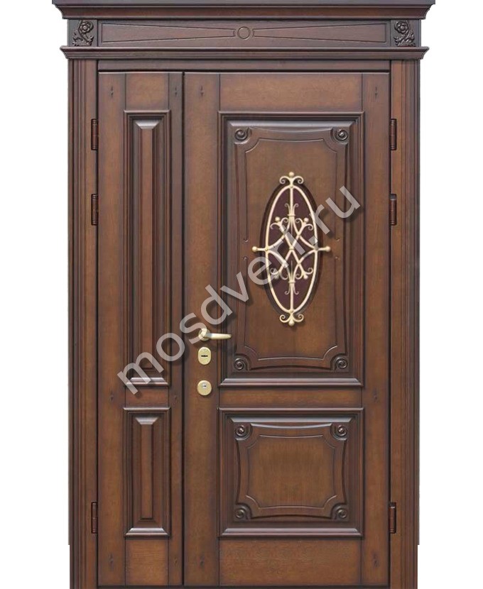 Двустворчатая дверь с кованым элементом — совмещает современный дизайн и максимальную защиту.
