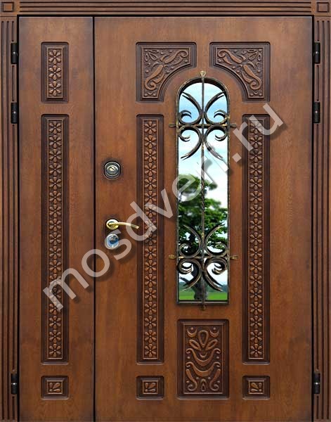 Двупольная дверь с элементами ковки — объединяет современный дизайн и высокую надёжность.
