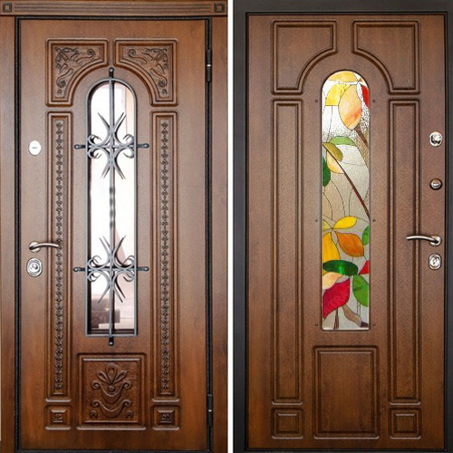 Элитная входная дверь с виноритом со стеклом, ковкой и витражом — объединяет стильный внешний вид и превосходные защитные характеристики.
