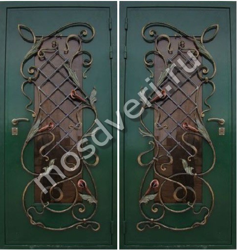 Порошковая дверь со стеклом и ковкой — совмещает эстетичность и высокую надёжность.