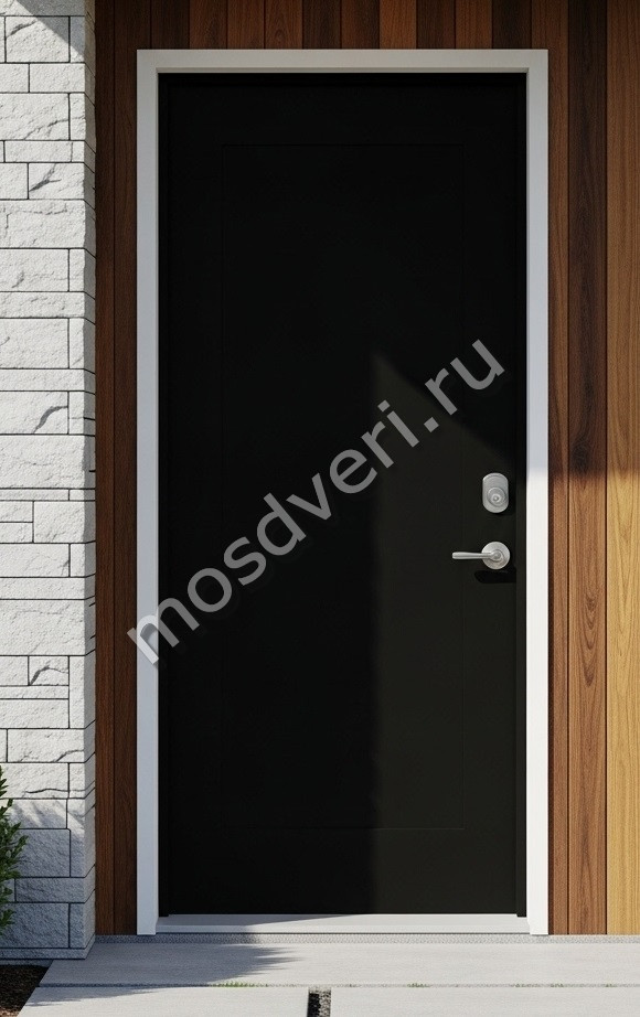 Высокая входная дверь в дом черного цвета — объединяет современный дизайн и превосходные защитные характеристики.